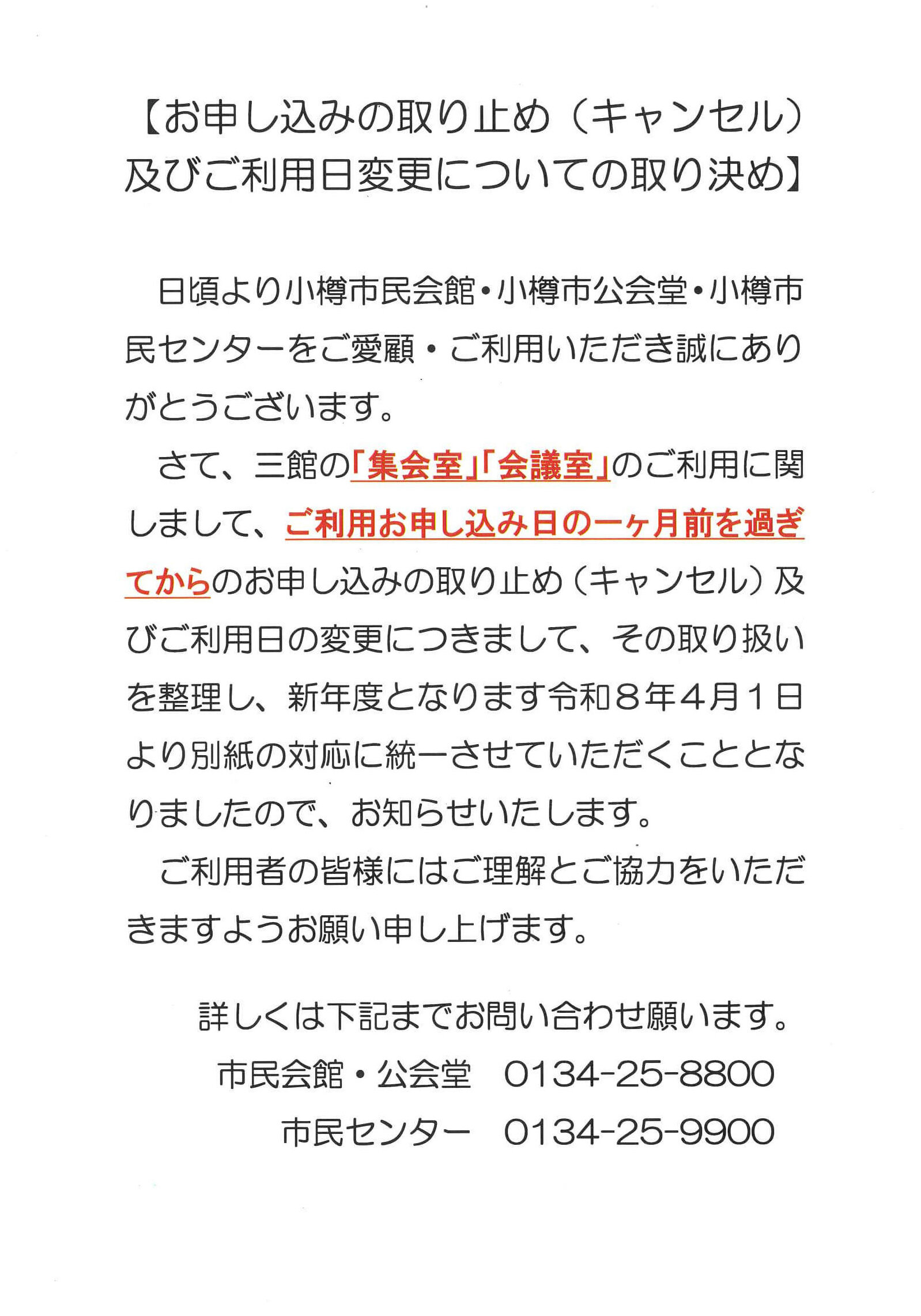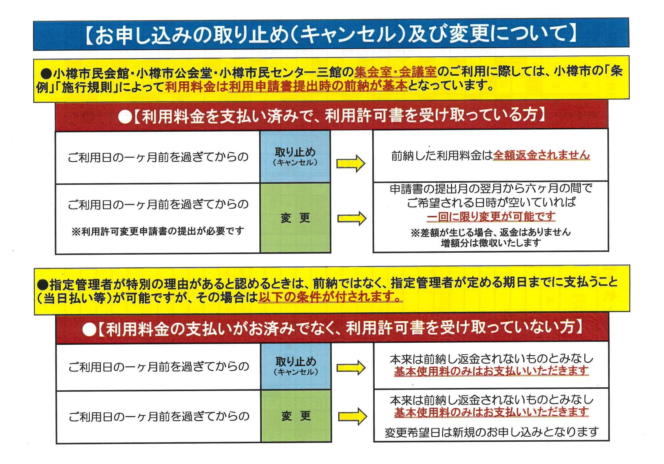 【お申し込みの取り止め(キャンセル)及びご利用日変更について】